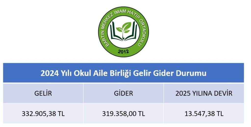 2024 Yılı Okul Aile Birliği Gelir-Gider Tablosu aşağıdaki tabloda verilmiştir.
