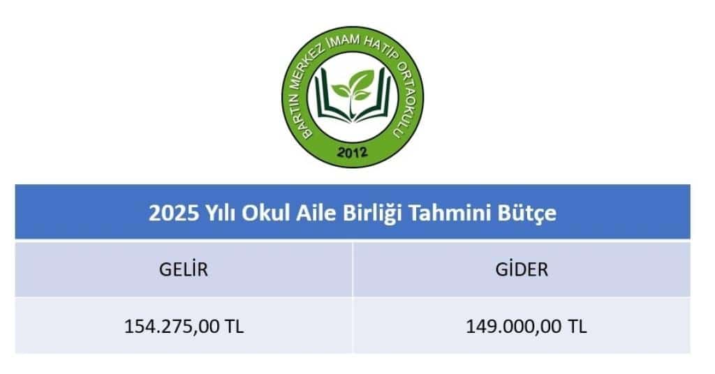 2025 Yılı Okul Aile Birliği Tahmini Bütçemiz aşağıdaki tabloda yer almaktadır.